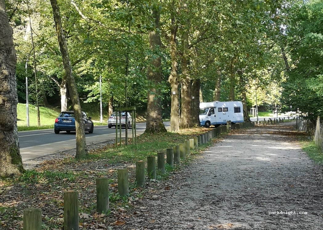 Plenty of parking space under the plane trees. Roadside but quiet enough for the city. Next to the parc de coince, some places flat. Search all the way to find your happiness. Beautiful view of cork a little higher on the right. Bus 21 right next to the guillemins every 10 mins even late at night. Otherwise the station is 10 mins downhill