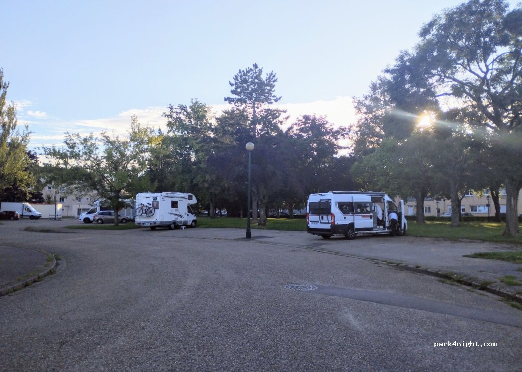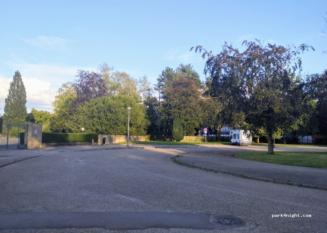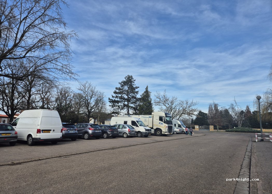 Parking du cimetière spacieux et goudronné. Borne à eau dans le cimetière si besoin. Nous étions plusieurs CC sans problème. Boulangerie proche, hélas fermée pour congés annuels. Quartier calme et assez proche du centre ville.
