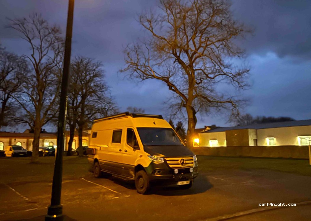 Beaucoup de places et un camping car pas loin. Je e vois aucune indication de disque, très calme et bien éclairé. Le centre historique est à une quinzaine de minutes à pied.