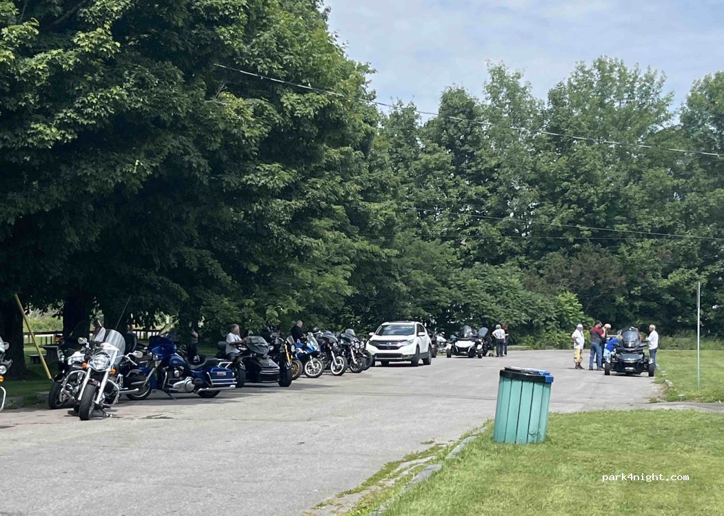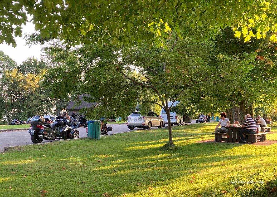 Endroit très sécuritaire, plusieurs tables de pique-nique et plus d’une dizaine de campeurs (vans et roulottes) à notre réveil. Merci à la municipalité!