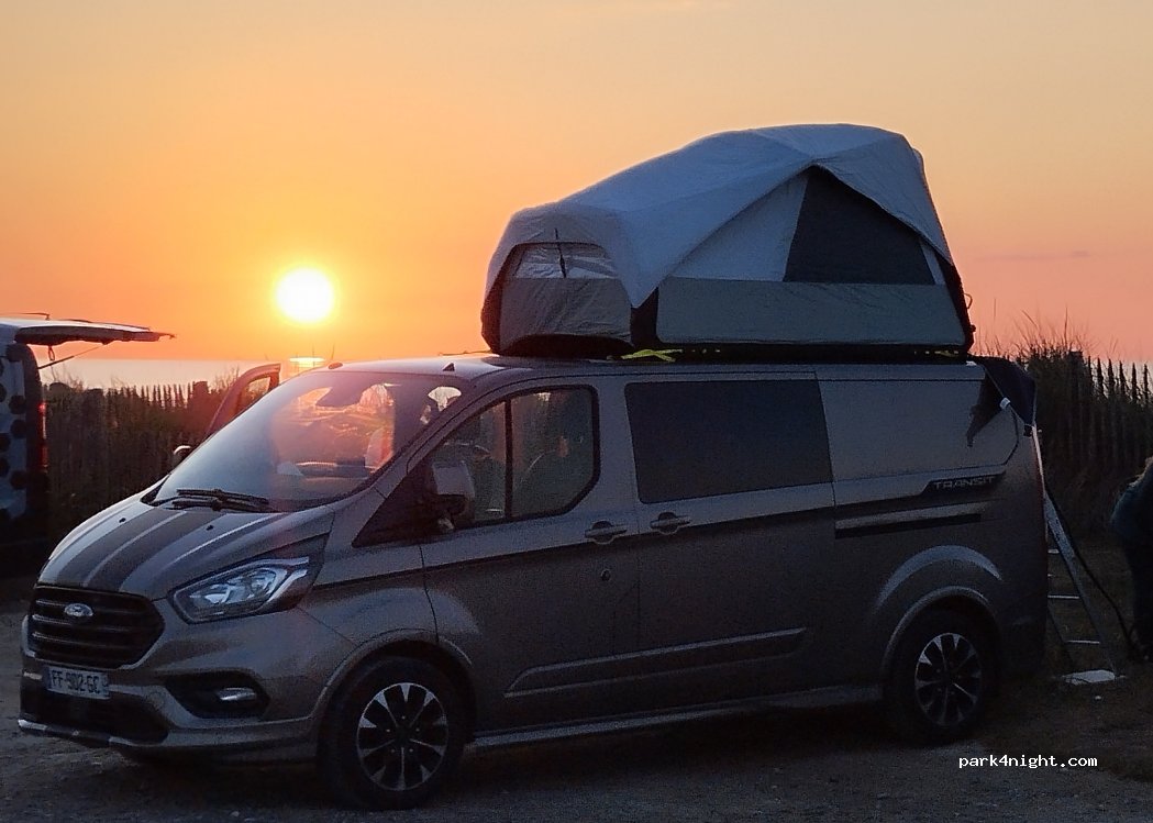 INCROYABLE ! Juste magnifique, gros coup de cœur! Le lieu est très propre et calme avec un acces direct à la plage. Vous pourrez voir un magnifique coucher de soleil au bord de l’eau. Des toilettes sont à disposition à l’école de voile ( cependant elles ferment la nuit) . Nous y sommes restés 1 nuit en tente de toit et c’était vraiment super agréable.