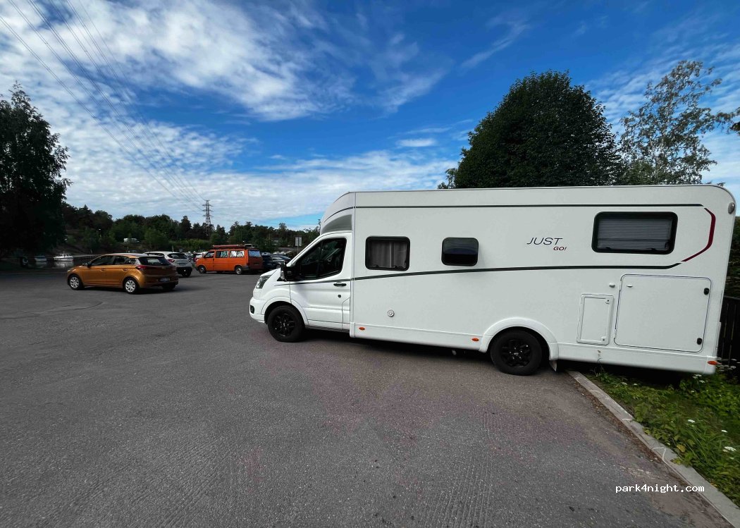 We arrived in this parking lot around 7 PM on a weekday with a 23 feet long motorhome and everything was very crowded, the parking spaces are small and short and it wasn't very quiet. It was neither very flat so we drove on. Otherwise it is probably a good place where leave the motorhome while visiting the city center but it is better to arrive early to get a place.