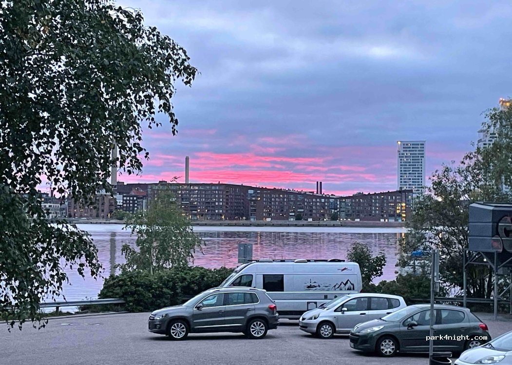 Bel endroit pour passer la nuit pas loin de Helsinki. Accès au centre ville en 20 minutes de vélo à peu près. Sur l’île juste après le pont il y a deux douches de plage, très pratiques et qui dépannent bien. Attention, la police passe très régulièrement sur le parking, pensez à mettre votre disque et à bouger tous les 24h.