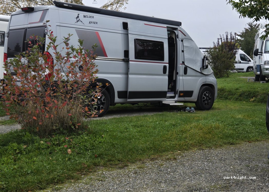 Aire calme avec les cigognes, propre, pratique pour visiter Meersburg, faire du vélo autour du lac. Électricité et eau payante mais on ne paie que ce que l'on veut consommer.
