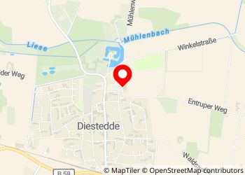 Schöner ruhiger Stellplatz für 2 Wohnmobile direkt hinter der Turnhalle der Grundschule im Ortsteil Diestedde. Bäckerei und ein Imbiss befinden sich im Ort. Pizzeria um die Ecke.