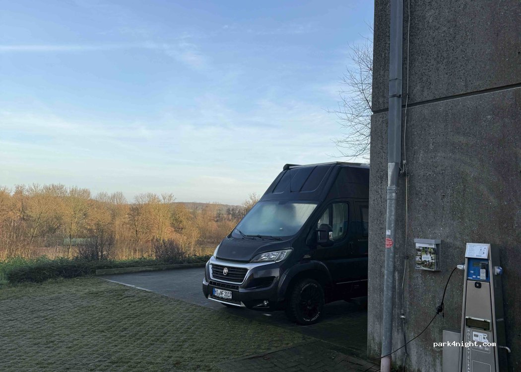 Schöner Platz für eine Nacht. Strom und Wasser gegen Gebühr. Entsorgung von WC und Abwasser möglich.