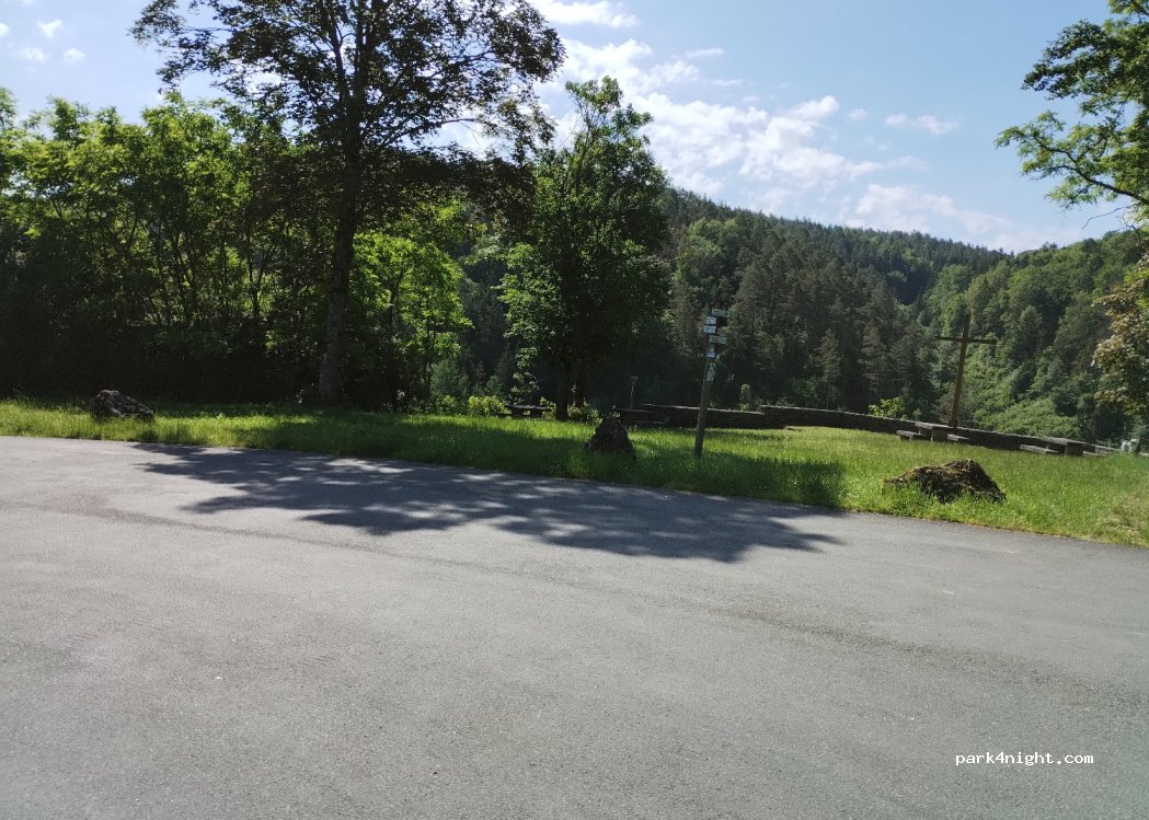 Une petite aire de repos qui vous invite également à passer la nuit. Juste dans la rue. Il y a des bancs.