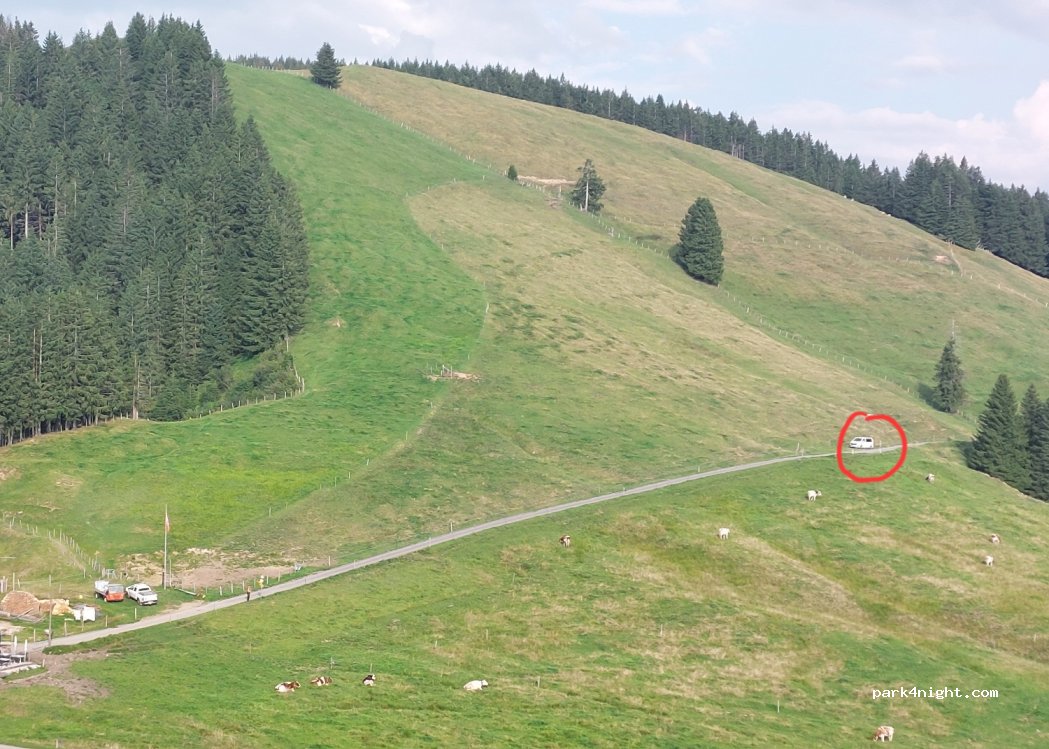 Parkplatz neben dem Hauta Chia (Restaurant). 200 Meter weiter. Sehr beliebt im Sommer, aber ideal außerhalb der Saison. Herrlicher Blick auf die Valsainte und die Gruyère.