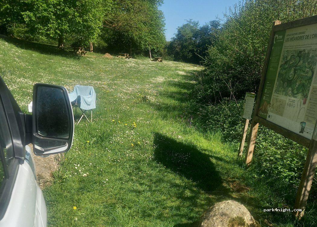 spot très sympa au bord de l'Orne, nous avons passé une très bonne nuit pour seul bruit, le bruit de la rivière et des chouettes