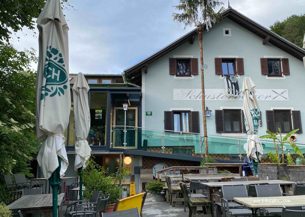 Gasthaus Schusterbauer a fabulous place for one or two days or more; the parking spaces are right behind the house, if you come later just stand there and report to the host the next day; the quiet ambience is really unique, no traffic. Excursions nearby: Graz is about 15 km away, but the Stübing open-air museum or the oldest Cistercian abbey in the world are also nearby. if you want to go on a hike or a bike tour, the Mühlbacher is perfect for this. If electricity or fresh water is required, simply notify the host. But breakfast, a Styrian fried chicken or an ice cream on the sun terrace is also an insider tip.