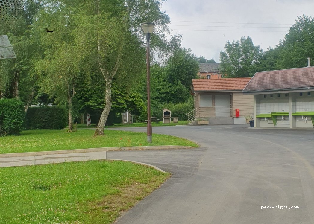 Très beau petit camping. Accès par borne camping car park. Emplacement spacieux et bordés de haies Sanitaires très propres. Au bord d une petite rivière où nous avons pu rafraîchir notre chien. Nuit calme. Réveil agréable avec le chant des oiseaux.