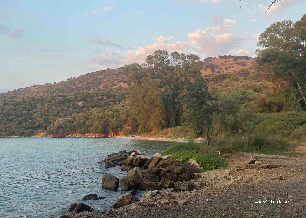Sehr schöner Platz! Standen nicht an der Stelle von dem Foto, sondern sind den Schotterweg noch etwas weiter gefahren und standen dort ganz alleine. Ganz hinten an der Felswand gibt es eine ganz keine Frischwasserquelle im Kies. Wasser war etwas trüb, viele Seeigel und Miesmuscheln. Aber darüber können wir hinweg sehen :) Haben etwas Müll gesammelt.