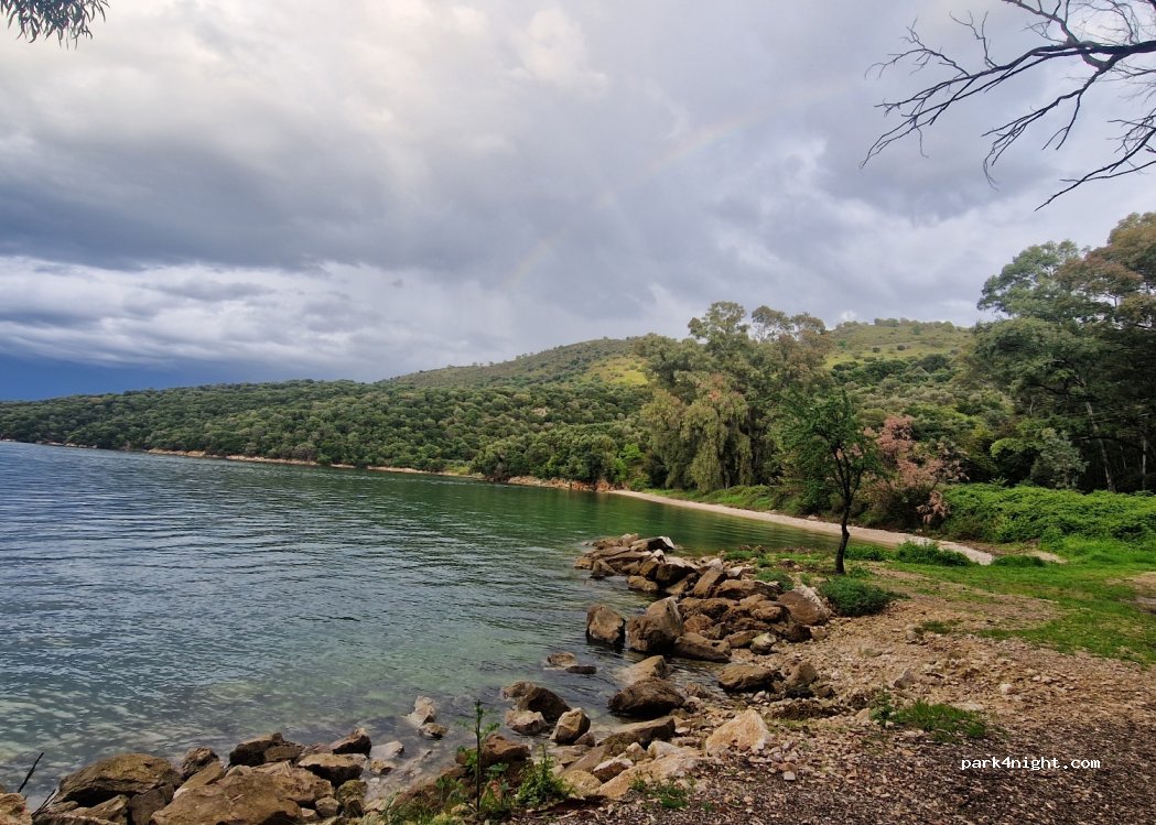 La grande place était totalement prise par les locaux, nous avons continué le chemin qui mène à une autre petite plage. Petit espace à plat sous un Eucalyptus, mais le chemin peut etre complique pour certains vehicules bas. Assez sale comme toujours. Peu d'oursin et plusieurs tortues. Frais en plein été. Eau trouble, on ne voit rien en PMT. 4g ok