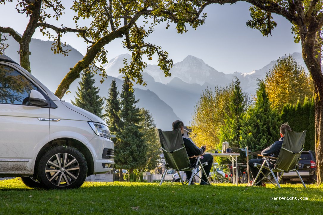 Lovely situation on the outskirts of Interlaken. Stayed 2 nights. Hosts very helpful in many ways. Nice bar and restaurant. Friendly staff and happy to chat. Local bus service to Interlaken just 2 minutes walk. One area for improvement would be another grey water and chemical toilet disposal point, the existing ones are tucked away in the long term residents area. We would return.