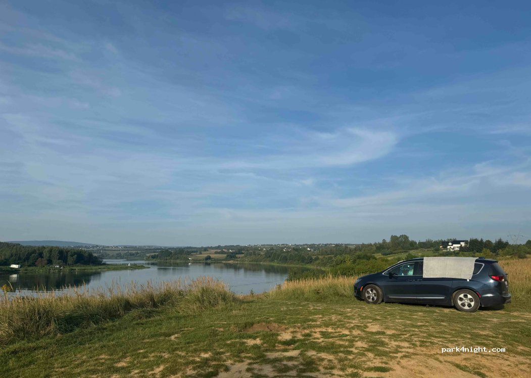 Piękna miejscówka. Można się schować za drzewkiem z super widokiem albo zjechać niżej nad samą wodę. Noc spokojna, cicha, choć w lato może być tu głośno od imprezek nad wodą. Rano (ok 8) przyjechało z 10 samochód na ryby.
