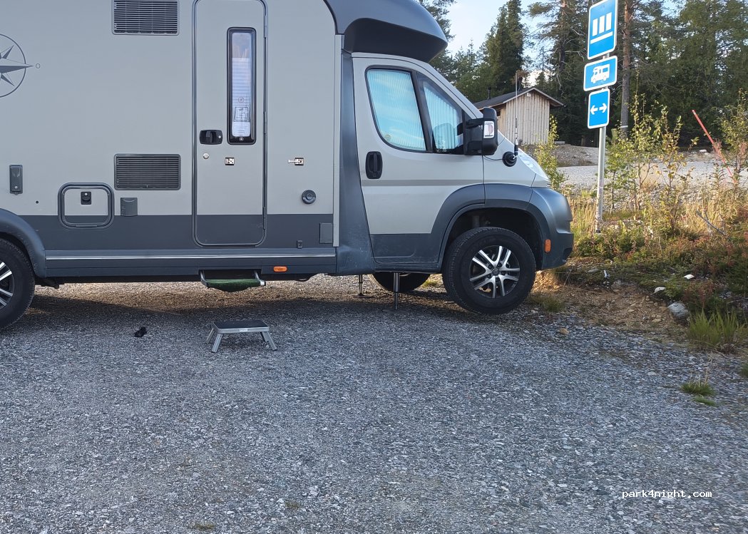 Großer Parkplatz vom Nationalpark. Leider alles recht schräg, aber oben in der Ecke kann man gut stehen. Einen Bereich speziell für Camper hab ich nicht gefunden. Es gibt Toiletten und eine kleine Hütte (tykky), die wohl schon mal bewirtschaftet ist. Google kennt den Platz noch nicht, also einfach die Schotterstraße zum Ende durch fahren. Schöne Wanderungen mit shelter & Hütte zum Übernachten.