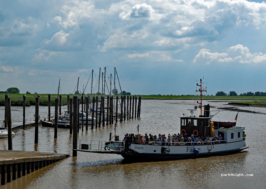 Parcheggio gratuito al terminal dei traghetti, splendida vista sulla diga e sull'Ems. Niente servizi igienici, niente elettricità o altro.