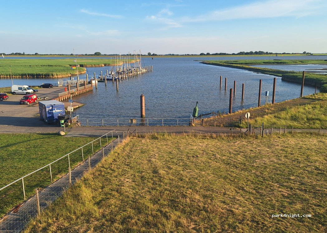 Parking gratuit au terminal des ferries, superbes vues sur la digue et l'Ems. Pas de toilettes, pas d'électricité ou autre.