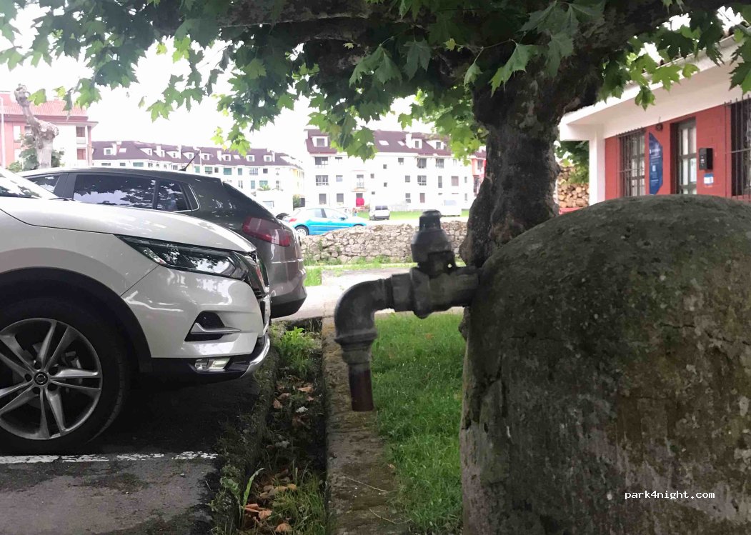 Parking à proximité du centre de Colunga. Il y a un robinet d'eau.