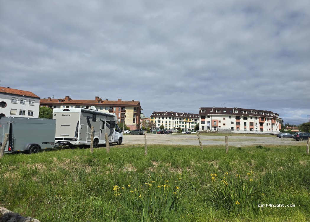 Descampado en el centro de Colunga... se duerme tranquilo rodeado de varias furgos y AC. Ahora que han prohibido la Espasa es una buena solución para pasar la noche, más acogedor que la gasolinera que está a la entrada del pueblo. Sin ningún servicio