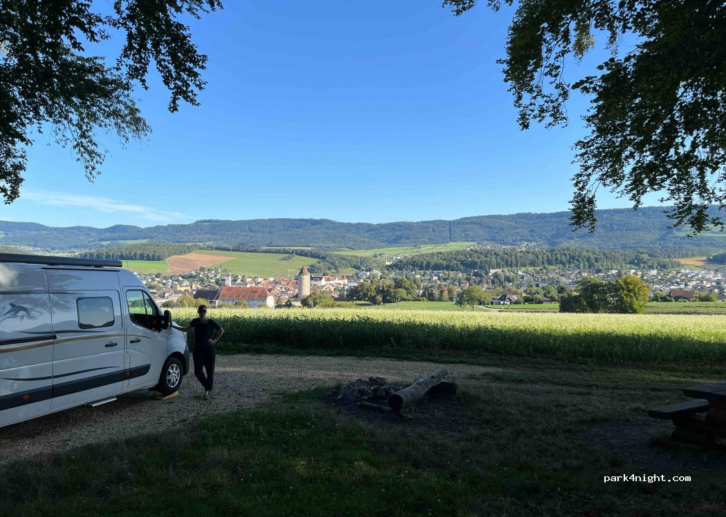 Spot magnifique en lisière de forêt avec une vue imprenable sur Porrentruy ! Une seule place à disposition très calme une table de picnic un foyer et une poubelle également. À ne pas manquer !