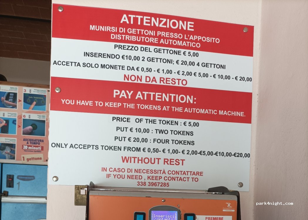 Estupenda lavanderia, bien de precio, 4 lavar y 4 secar, debes cambiar los euros en una maquina que te da monedas especiales (gettone). Cuidado con la secadora, calienta mucho en el programa CALIENTE