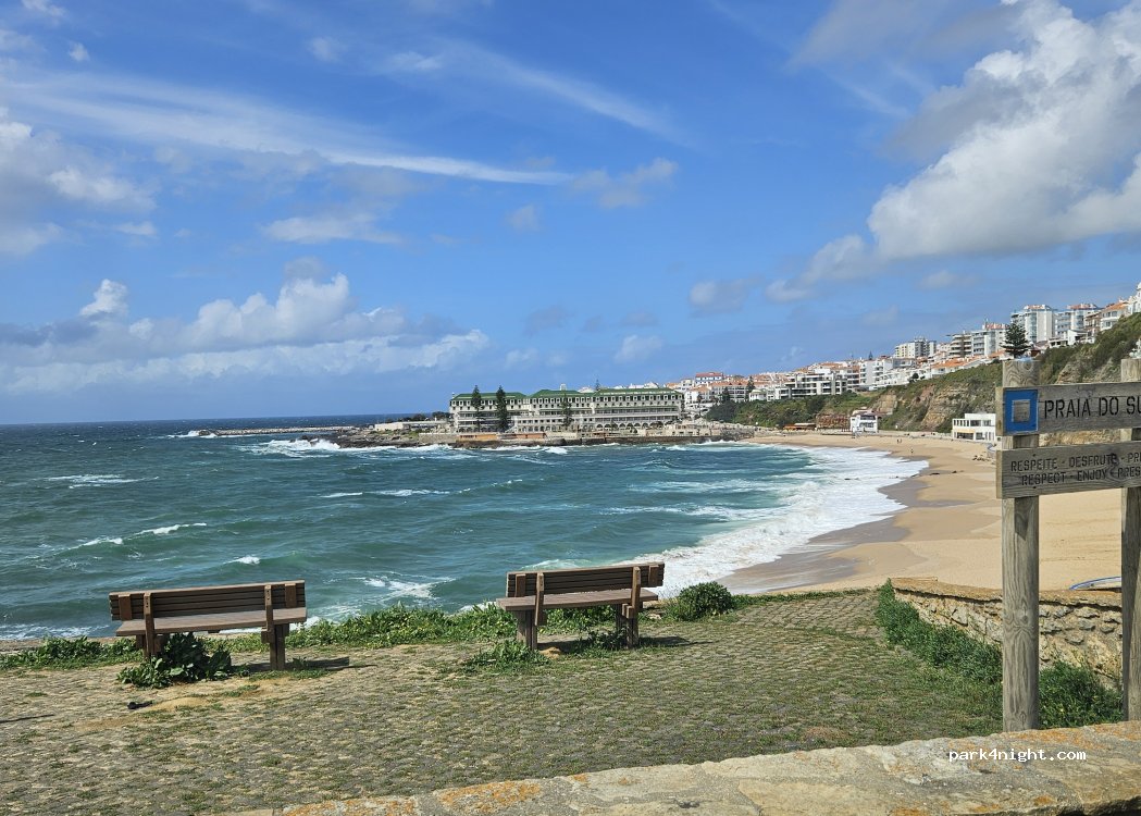 Hay un aparcamiento habilitado con bastante inclinación, pero al lado, en un nivel superior existe una zona más llana de tierra. No hay servicios, si baños en la playa. Conseguimos hueco de milagro. Tiene vistas a la playa de Ericeira y su piscina natural, y se llega al centro en 10'. Centro agradable y muy animado. Vecinos respetuosos. Un buen sitio para parar una noche yy conocer el pueblo.