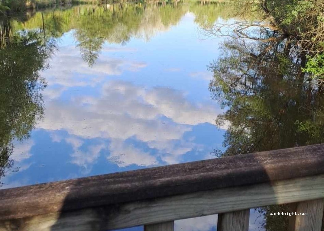 Near the pond, it's a nice place to spend the night. Around the picnic tables.