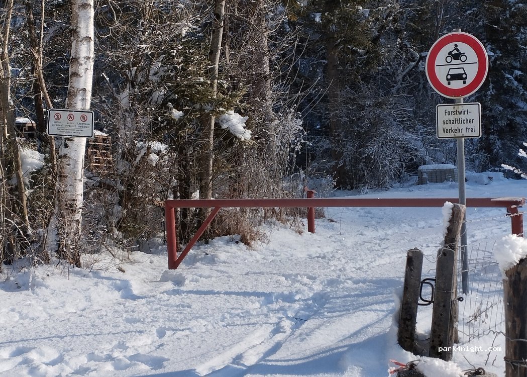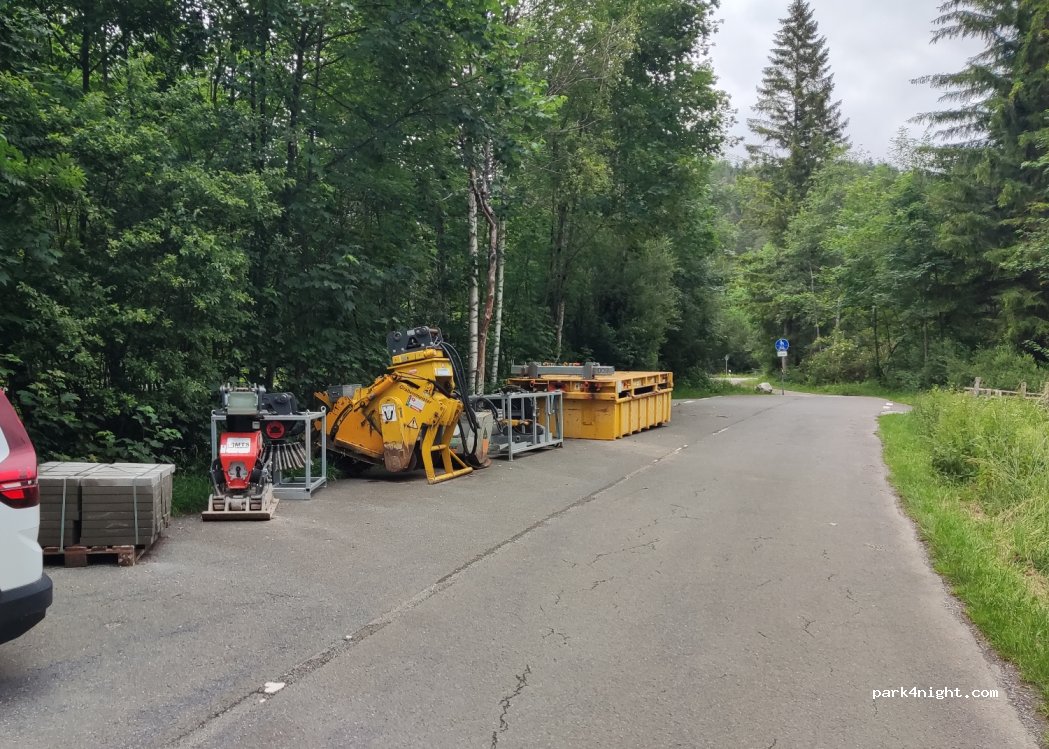 Der Parkplatz existiert nicht mehr. Es ist nun ein Forstweg und zelten sowie nächtigen ist untersagt. Es gibt aber noch einige Parkplätze an derselben Straße an einem Fluss und Wald