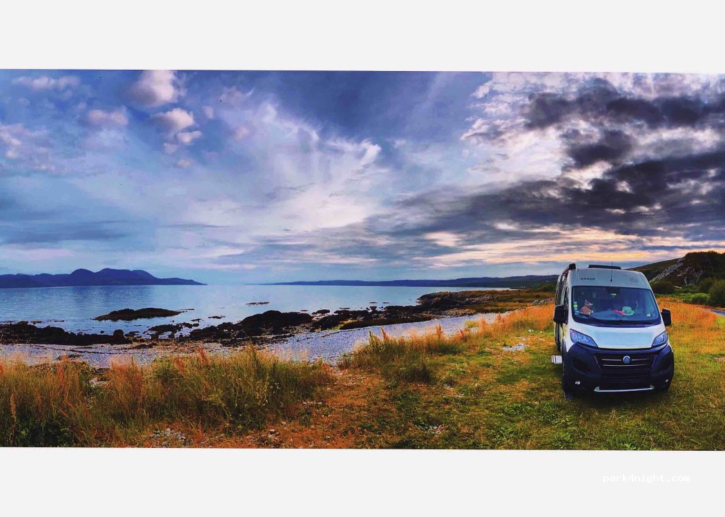 Probably the prettiest spot we stayed at the Kintyre peninsula - quiet, beautiful views across to the Isle of Arran, small private pebble beach - can’t be any better. We spent two wonderful days there. Good phone reception too.