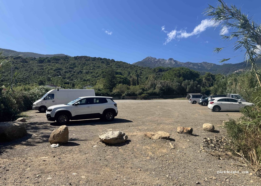 Kostenloser Parkplatz am Ortsende. Wir haben hier Anfang April eine ungestörte Nacht verbracht. Der Parkplatz ist nicht sehr schön, aber dafür eben und ruhig. Für eine Nacht ok.