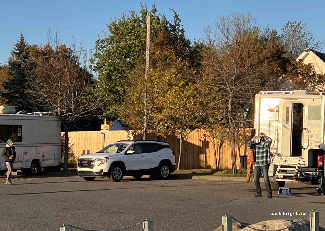 Il est maintenant permis de dormir dans ce stationnement avec horodateur : 40$/24h, 20$/12h, 10$/6h, 5$/3h et 2.5$/h. Très bel endroit, plage pour la baignade, toilettes sèches très propres (toilettes régulières et lavabos disponibles très prochainement), tables à pique-nique et un gazebo. Boulangerie 5 min. à pieds, café et pâtisseries. Permission de dormir confirmée par le personnel de la ville.