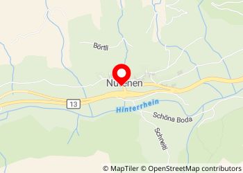 Ampio parcheggio dietro il ristorante Rheinwald. Abbiamo mangiato lì (Rösti era molto buono) e abbiamo potuto passare la notte nel parcheggio su richiesta. Dalle 6 del mattino il ristorante è aperto e teoricamente si può fare colazione / caffè per arrivarci. Notte relativamente calma.