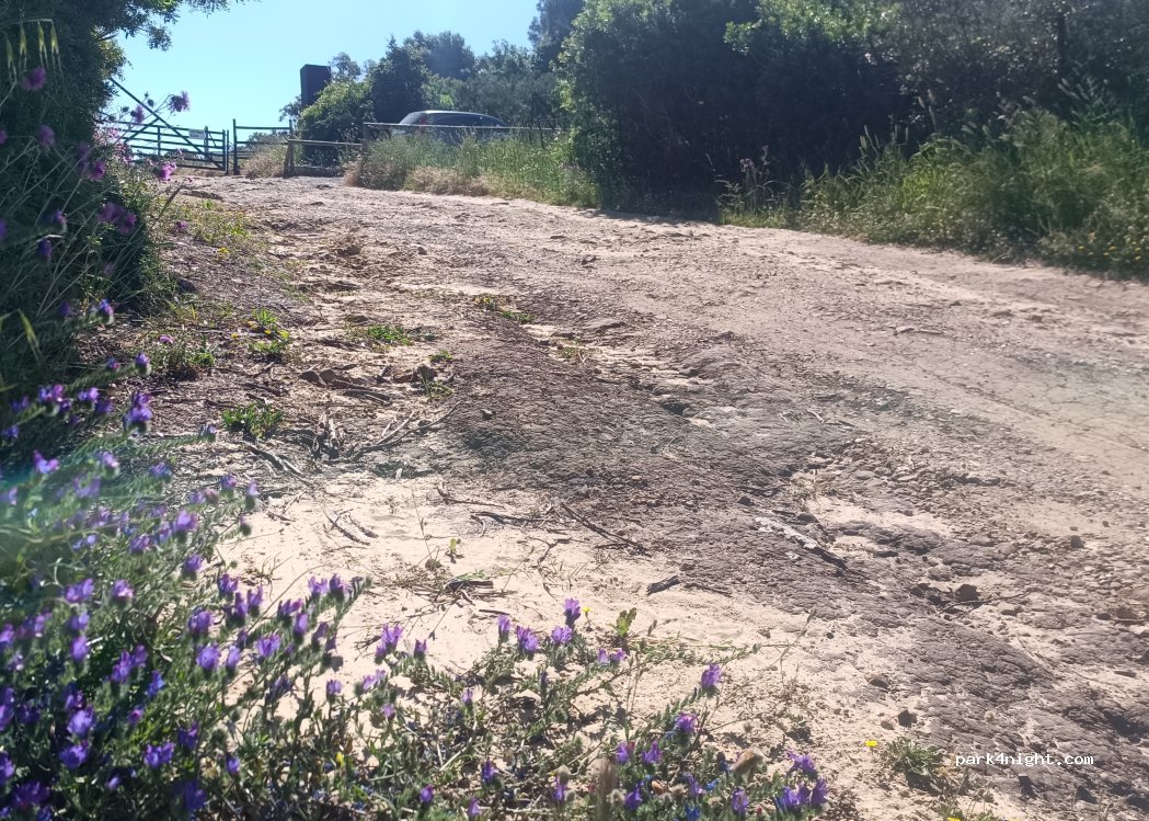 Destiné uniquement à des petits 4x4. Piste défoncée, petit parking pour 1 et maximum de 2 , si petits véhicules. À déconseiller fortement pour d'autres conditions, sachant qu'à peine plus loin se trouve une zone de stationnement adaptée.