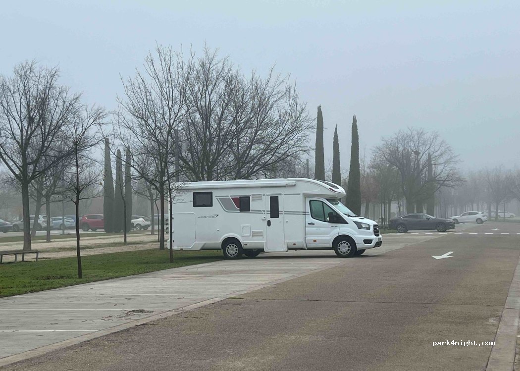 For free, a lot of space and several other campers (also in winter). Not the calmest spot for staying overnight (several cars and noisy streets around). Ideal for visiting the Basilica and the City Centre of Saragossa (40 min walk).