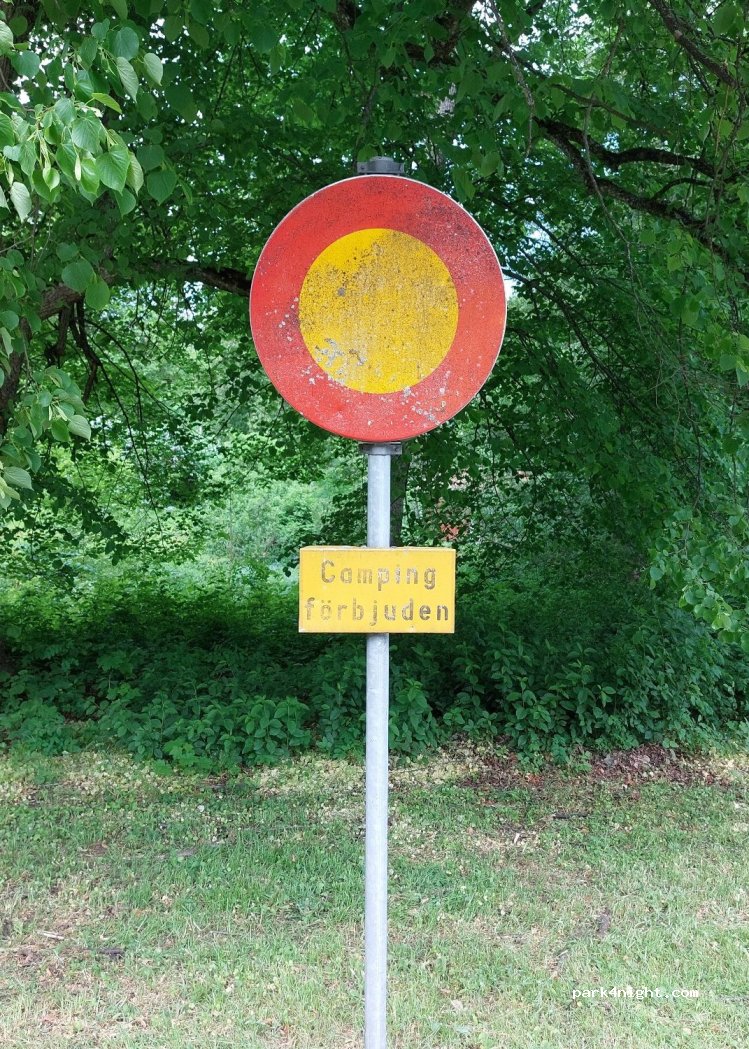 Achtung hier steht ein Schild: Camping verboten! Hunde sind auch verboten- steht schon am Parkplatz Eingang