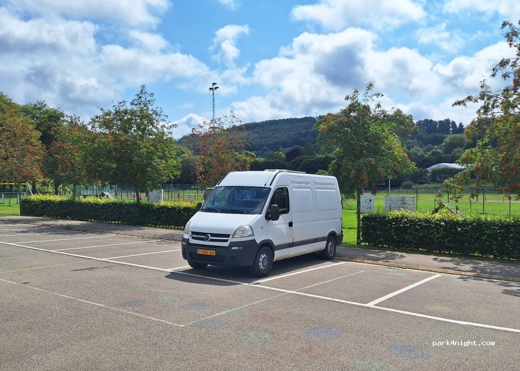 Wij hebben onze berlingo camper Aan de achterkant van het sportcomplex thv de tennisbanen geparkeerd. T was er rustig. Geen straatlawaai. Dicht bij de winkelstraat.