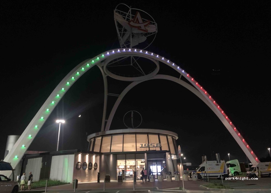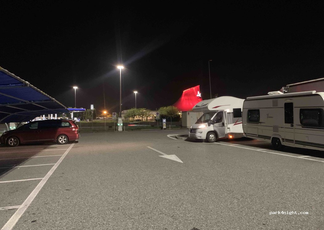 Super Gelegenheit um eine Nacht zu überbrücken. Wer gut schlafen kann, kann auch die relativ laute Autobahn auch in ausblenden. Es ist auf jeden Fall ein sehr belebter Parkplatz mit Sanitäranlagen, welche sehr modern und ordentlich sind!