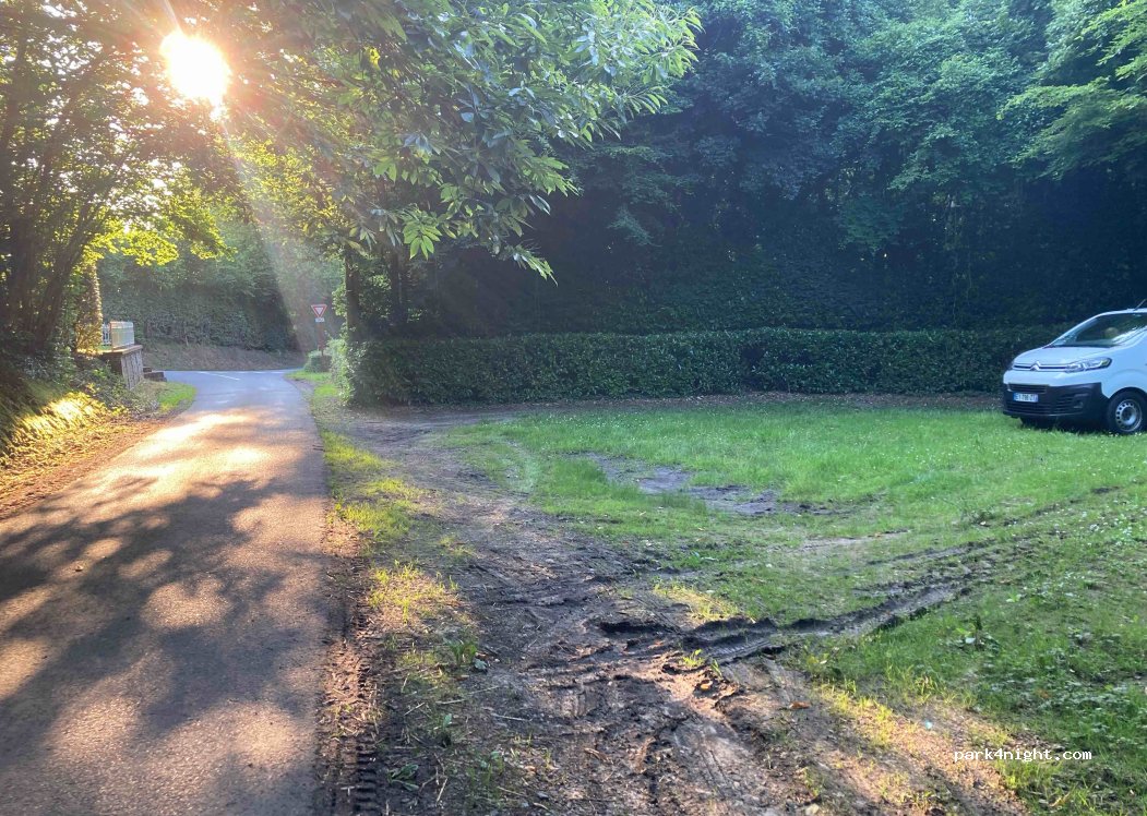 Perfekt! Sehr ruhig und idyllisch. Halbkreisförmige Wiese, die den Spuren nach, öfters als Parkplatz genutzt wird. Evt von Anwohnern? Steht kein Verbotsschild.