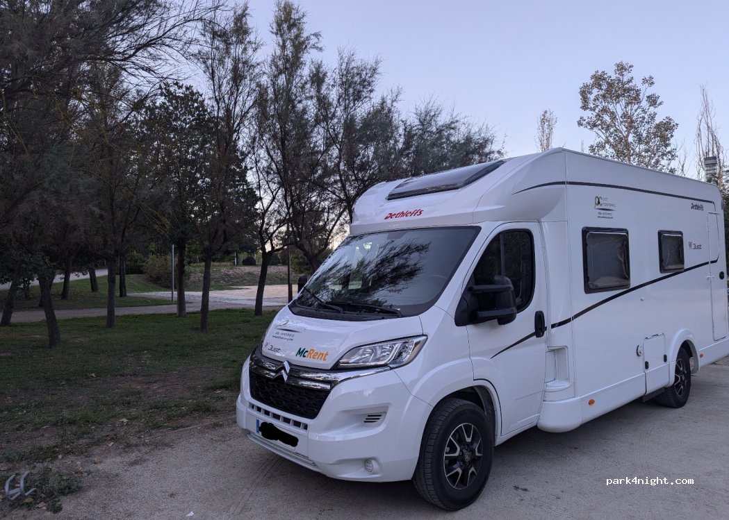Parking amplio, con sombras y muy tranquilo. Se puede pernoctar, sin un ruido. Lo malo de la zona es que hay bastantes mosquitos y al anochecer te acribillan. Desde aquí se puede visitar el Monasterio de San Benet y en la zona de entradas y tienda, hay unos baños muy limpios.