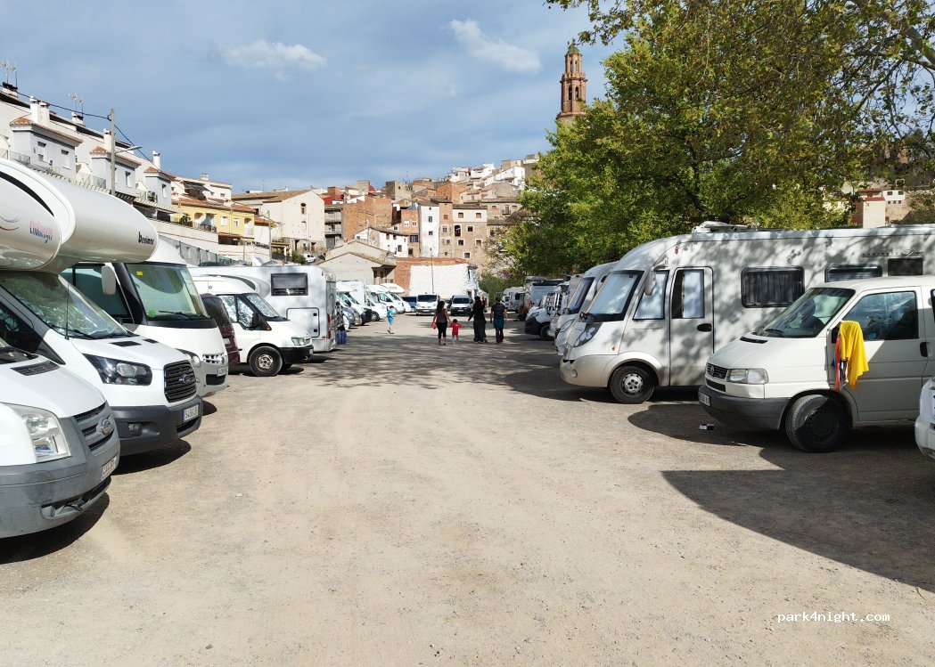 Parking in open ground. No service, but it is at the beginning of the route around the Hoz return and next to the Paseo de las Fuentes, as well as other routes. There is a drinking water pipe next to the laundry room. An option if we want to avoid parking next to the restaurant on that promenade. We have slept peacefully.