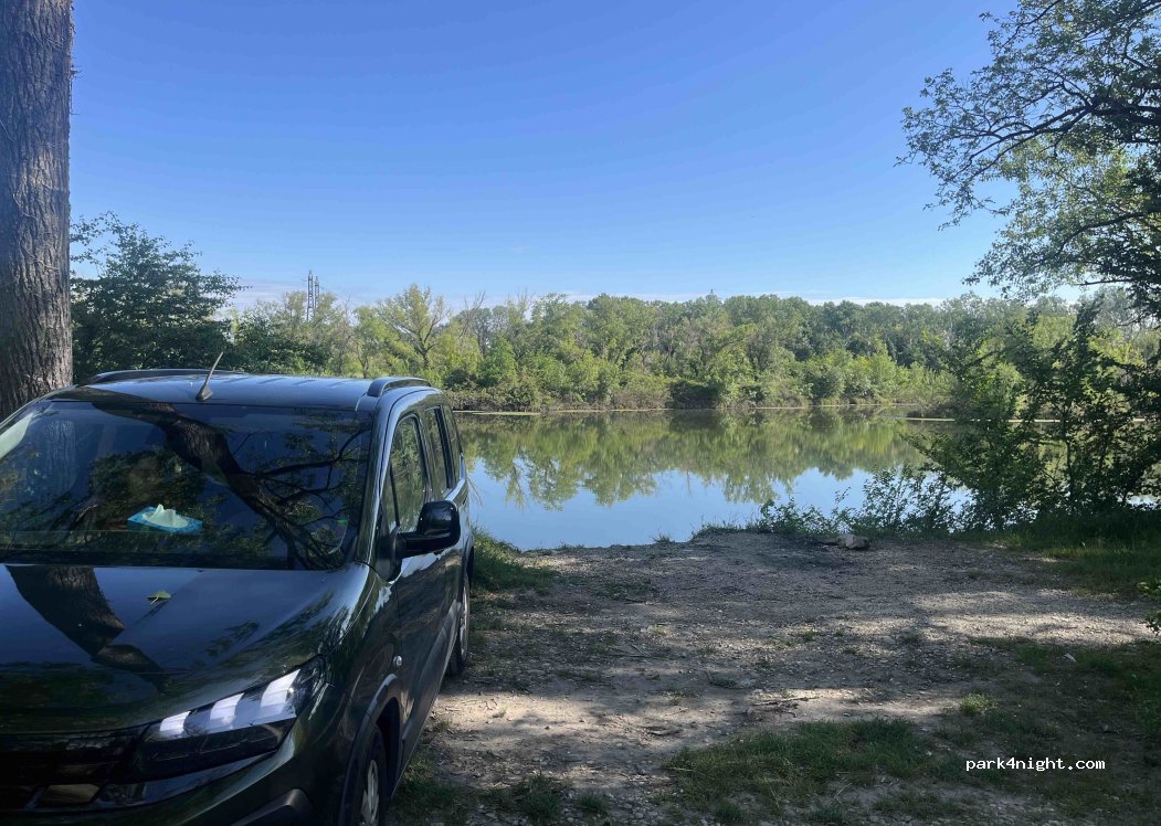 Lieu sympa au bord de l'eau. proche de la route. ⚠️guêpes et moustique !! Quelques pêcheurs le matin tôt. Des va et viens de voitures la journée et le soir ... Nous avons passés une 1ere nuit très bien et sommes revenus le soir suivant. A notre retour des déchets Mc Do au sol alors qu'il y a des poubelles juste à côté!! Le soir 3 voitures de jeunes, assez bruyants. Dans l'ensemble c'était bien.