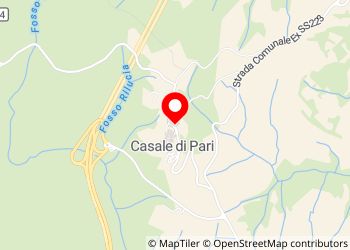 Derrière la maison de retraite pour personnes âgées, un parking plat sur herbe éclairé la nuit trattoria / tabac / bar se trouve sur la place du centre-ville à 200 mètres terme di petriolo 4 km environ