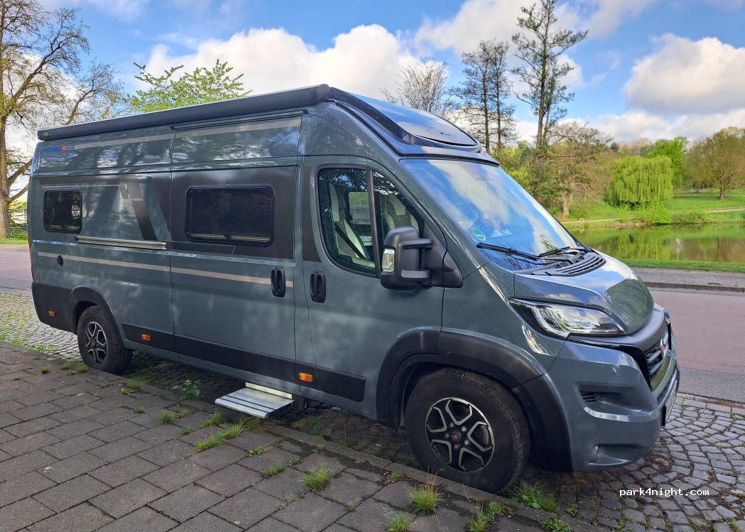 Wir standen hier 2 Nächte sehr gut, Stadt ist fussläufig in 20 min erreichbar. Am Wochenende ist es leichter, eine freie Parkfläche zu finden und es ist ruhiger als in der Woche.