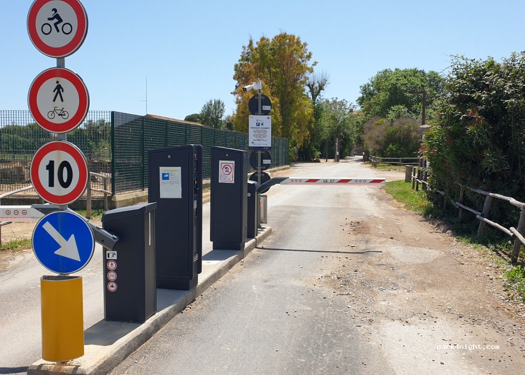 3 horas 1,5€ El parking es Amplio. Si llegas pronto hay una zona de sombra detrás de los Juncos que parece durar toda la mañana. Sobre la playa. Es bonita, pero es un basurero, como toda Italia.