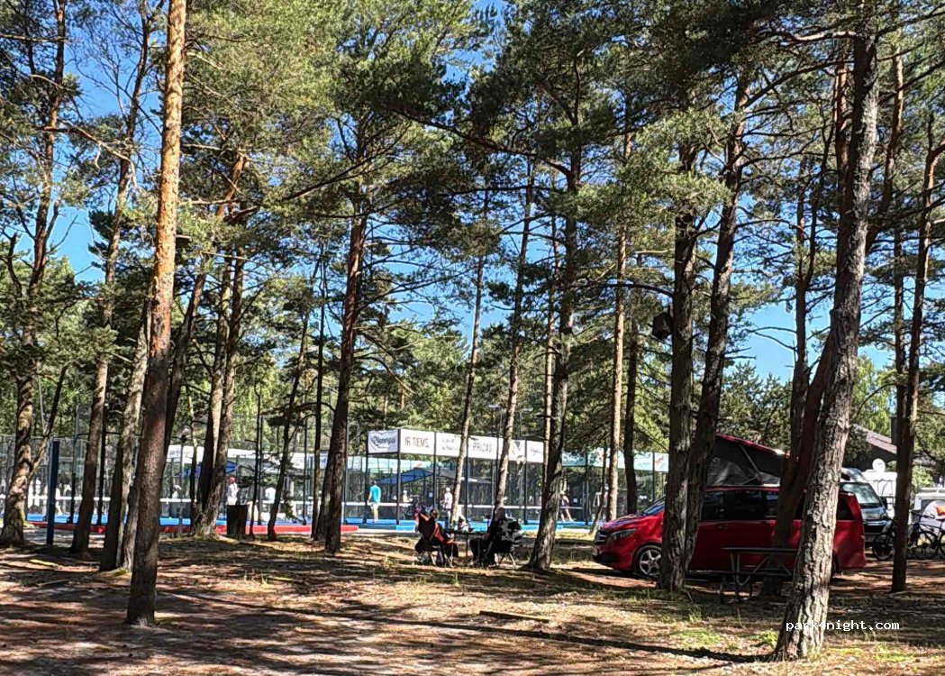 No booking in advance - in case they are full (rather often during summer weekends) you must turn and get back to mainland, as this is the only campsite in the area where parking with rv is forbiden. Padel games in the middle of campsige - is a great disrespect to travelers. Shouting and bumping from 8am to 10pm. Nida is a wonderful city, but never ever go there with a motorhome.