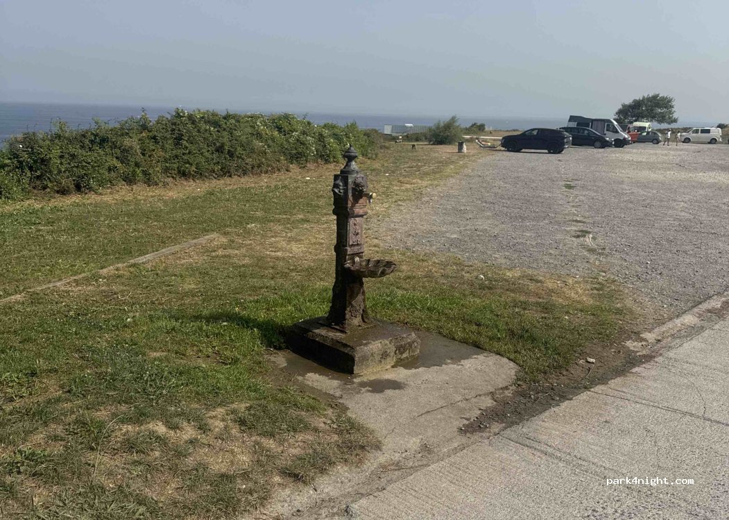 Aparcamiento al lado de los acantilados, con fuente y rutas de senderismo, pasa la policía pero no dicen nada. Solo para dormir, esta muy sucio y por la noche mucho trabajo sito de coches que van un rato. Si vas con niños pequeños no muy aconsejable.