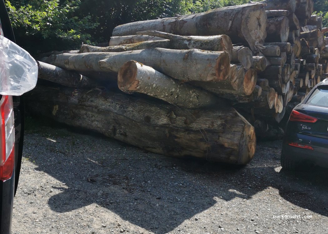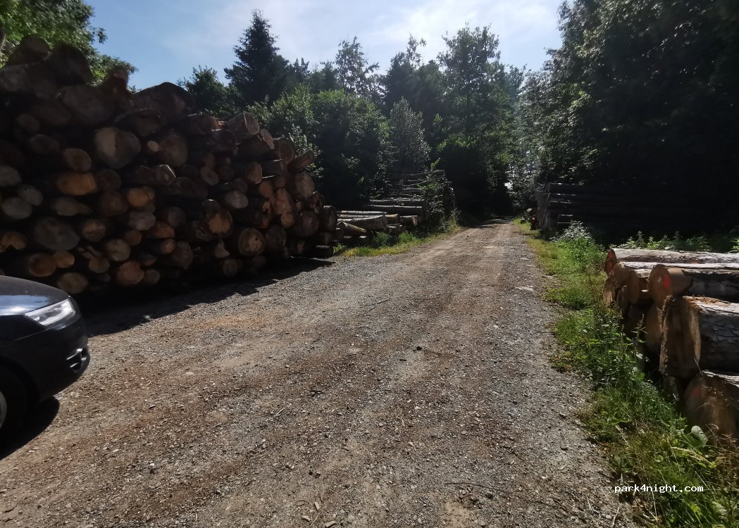 L'emplacement est occupé par des troncs d'arbres issus de la coupe forestière. Ces troncs seront probablement enlevés avant l'hiver... Une seule petite place reste disponible.