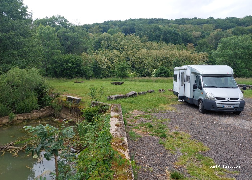 Spot très sympa entre verdure et rivière. accessible en camping car (7m). calme et paisible à souhait. juste les grenouilles et les oiseaux pour nous accompagner. manque juste les poubelles.