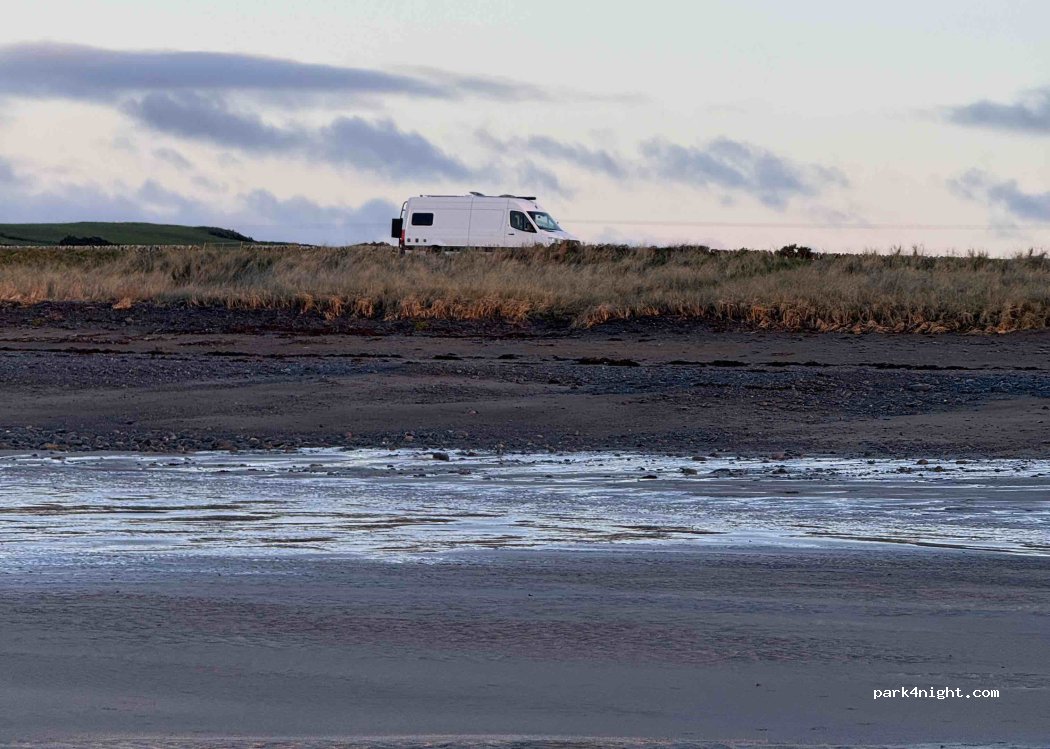 This is a perfect park up, arrived 7.30am one day and left 7am the next. Very peaceful, occasional dog walker heading down to the beach, or a passing vehicle on the road, but overall very quiet. Slept like a baby. Felt very safe as a solo female. Dogs LOVED the beach at low tide. Good signal on Three and SMARTY WiFi. Bins on site.